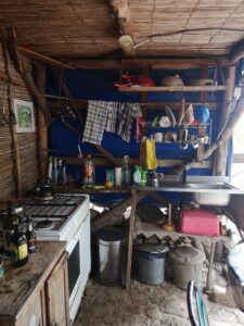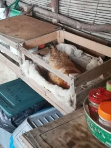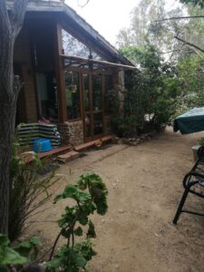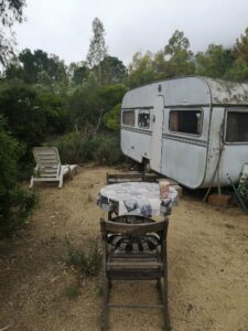 Dieses Mal wohnen wir aber im Wohnwagen. Der steht gerade neben dem Haus von Beata und Pietro und so können wir auf ihr WC, welches wie das Waschhaus einen eigenen Eingang hat. Im Wohnwagen haben wir Licht und zwei Steckdosen, sonst nichts. Aber wir fühlen uns so wohl, dass ich heute das Angebot in die frei gewordene Villa Rosa zu zügeln, nicht angenommen habe. Und Eylin ist hier auch gleich nach der Fütterung der Tiere abends, ohne lange durch die Dunkelheit zu gehen, wieder bei mir. Und die Katzen haben den Weg zu uns auch schon gefunden. Eylin ist viel mit Beata unterwegs. Manchmal geh ich mit oder ich lese.