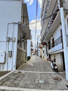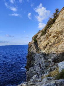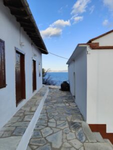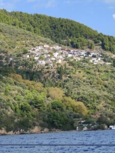 In Skopelos angekommen , holte uns ein Taxi ab. Die Fahrt ging auf die andere Seite und bot tolle Waldstücke und Sicht aufs Meer.