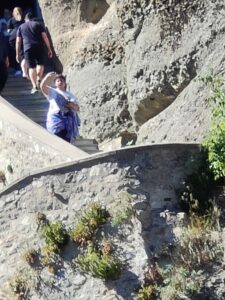 Wir trafen uns mit Regina, unserer Reiseführerin, auf dem Lidl- Parkplatz ! Sie stieg zu uns ins Auto. Die nächsten paar Stunden führte sie uns in zwei der noch erhaltenen 6 von ehemals 23 Felsenklöstern.