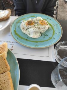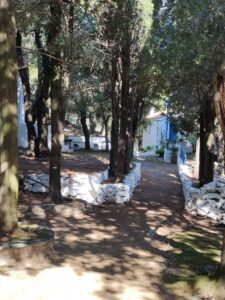 Wir kamen dann doch bei Kathos an. Man kann auf einem Platz parkieren und dann muss man wieder runter und wieder rauf wandern. Ich setzte mich beim geschlossenen Museum hin, die zwei machten sich auf den Weg. Langsam bekam ich Muffensausen: ich musste da ja wieder zurück!