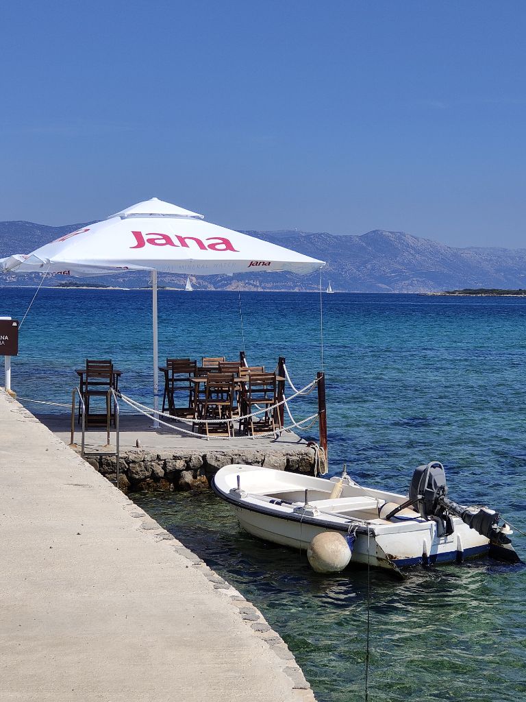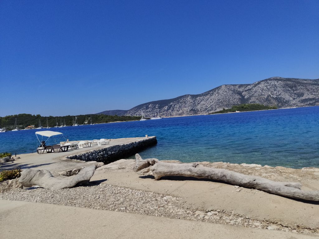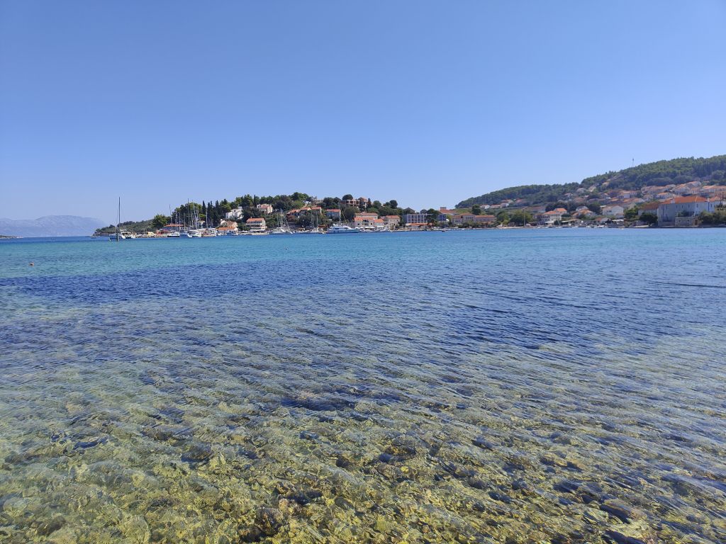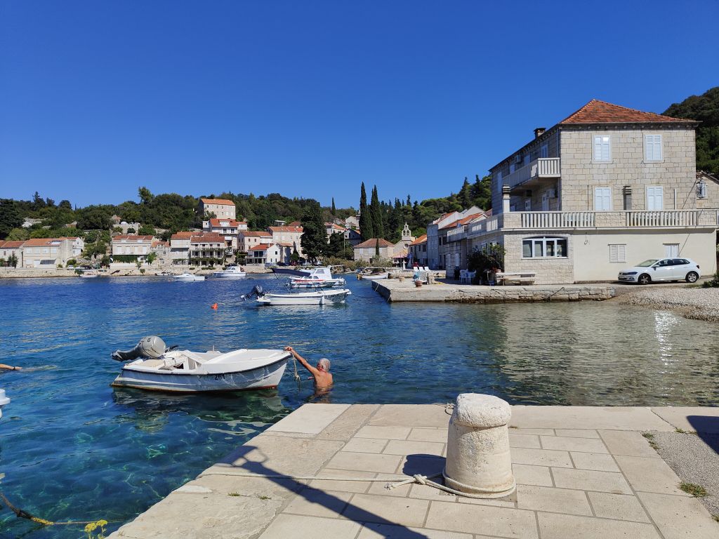 Später, nützt ja nichts , haben wir die Insel erkundet. Die ist schmalund nur rund 60 km lang. Zuerst sind wir im Landesinneren nach Vela Luka gefahren. Herziges Hafenstädtchen. Nachher von der Hauptstrasse ab und die nördliche Küste ringelirängeli runter durch Weinanbaugebiete. Es ist einfach nur schön hier. Dann nach Lumbarda, Hafenörtchen an Hafenörtchen. Bei unserer Unterkunft vorbei nach Radisce. Das ist der letzte befahrbare Punkt.