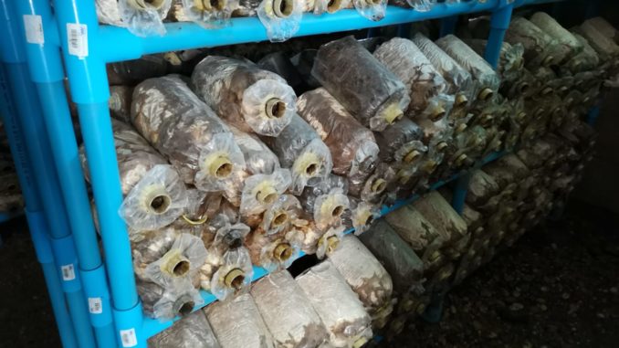 Sie zeigen, in welchen Etappen sie Komposterde machen. Der Architekt ist der Experimentierer. Er hat vier Treibhäuser oder zumindest was ähnliches gebaut. Dort wird verschiedenes Gemüse gezogen und Neues ausprobiert. Sie züchten auch Pilze.